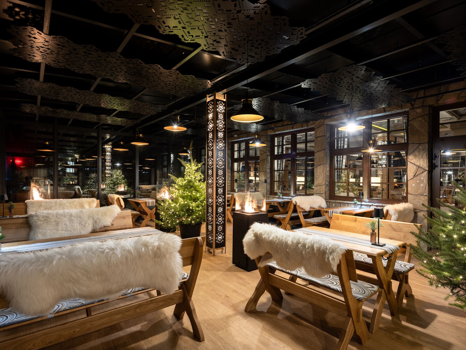 Drewniana karczma na szczycie góry to nie tylko miejsce – to przeżycie. Przytulne wnętrze z kominkiem, drewnianymi belkami i góralskimi detalami tworzy atmosferę, w której każdy czuje się dobrze. Z sali rozciąga się widok na beskidzką panoramę – idealne tło do rodzinnych obiadów, kolacji przy winie czy długich rozmów przy stole.